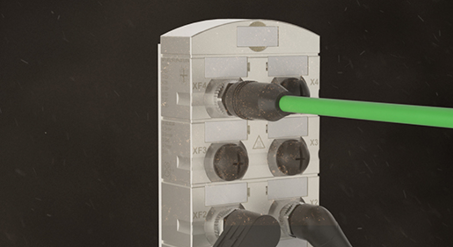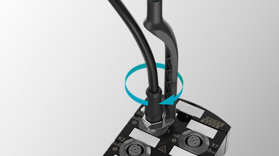 Die integrierte Rüttelsicherung sichert den Steckerkopf zuverlässig gegen Vibrationen. Die 360°-Abschirmung, stellt zudem störungsfreie Datenübertragungen auch in Umgebungen mit hohem EMV-Risiko sicher.
