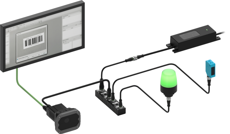 Hands-free scanning solutions are a common use case in logistics. Our One-Cam-Connect solution eliminates the need for manual single-wire wiring. Thanks to IP67 protection class, pre-assembled cables, and robust industrial connectors, the power supply and connection block can be connected quickly and securely — for a camera that is ready to read immediately.